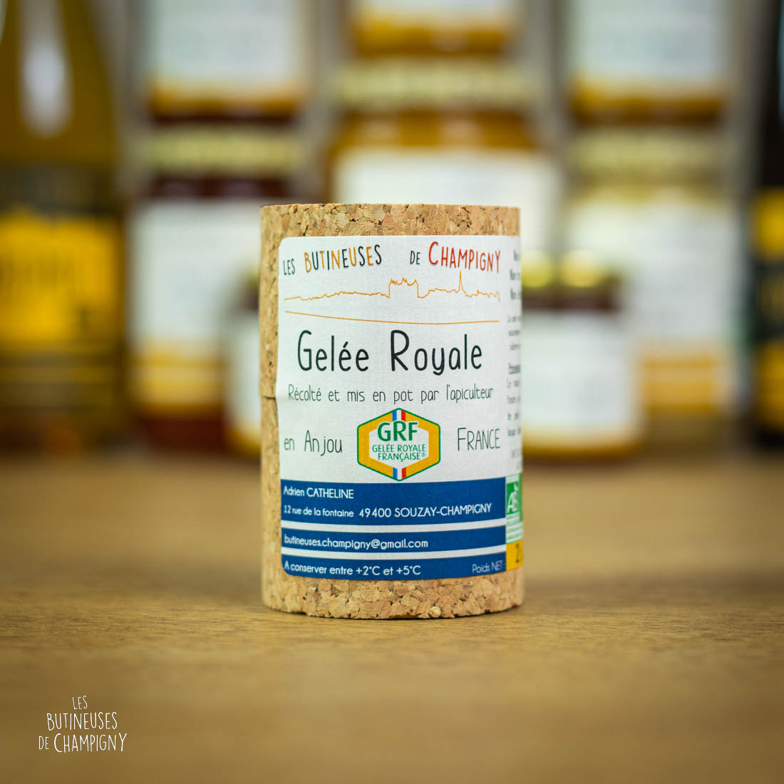 Notre Gelée Royale Française Bio est produite sous une charte de qualité et bénéficie de la marque “GRF – Gelée Royale Française” ainsi que de la marque “Valeur Parc Naturel Régional Loire-Anjou-Touraine”. Ces marques garantissent aux consommateurs des produits de qualité, issus de nos ruches situées aux alentours de Souzay-Champigny, un petit village près de Saumur (Maine-et-Loire), en plein cœur du Parc naturel régional Loire-Anjou-Touraine.