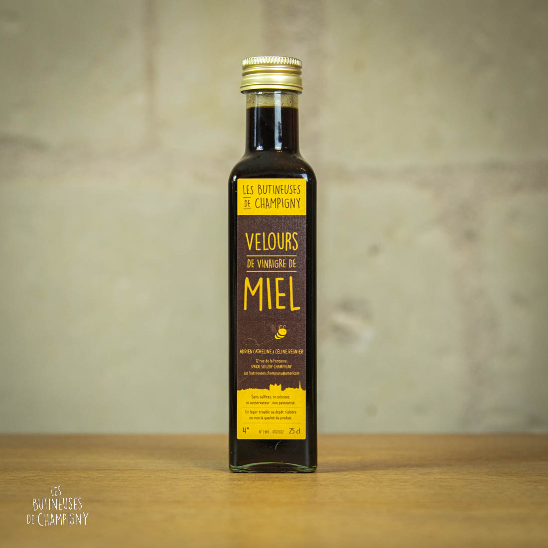 Notre velours de vinaigre de miel est élaboré avec notre miel de Forêt bio. À la manière d’un vinaigre balsamique, cette création suave et gourmande est idéale pour sublimer vos salades ou glacer vos viandes. Quelques gouttes suffisent pour enrichir vos recettes. Notre velours de vinaigre est très concentré en miel. Son goût acidulé et sucré est très bien équilibré.